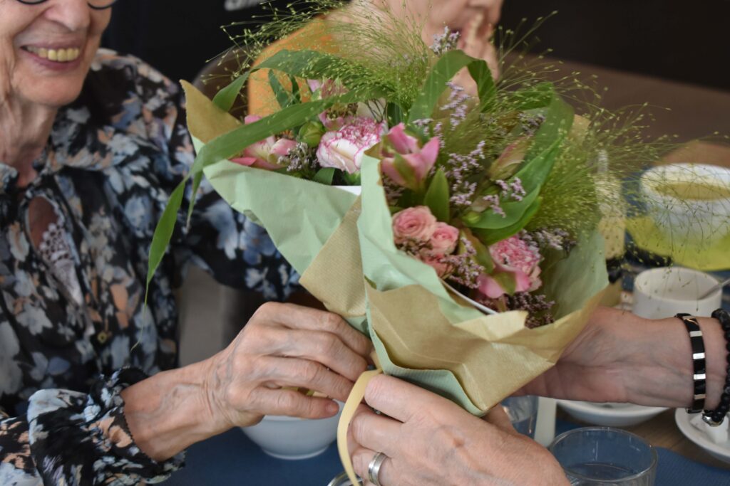 Nos résidents partagent des moments simples, remplis de bienveillance : un repas gourmand, une activité partagée, un rayon de soleil dans le parc.